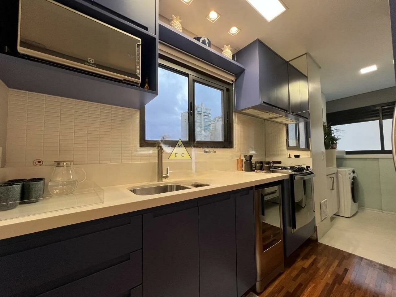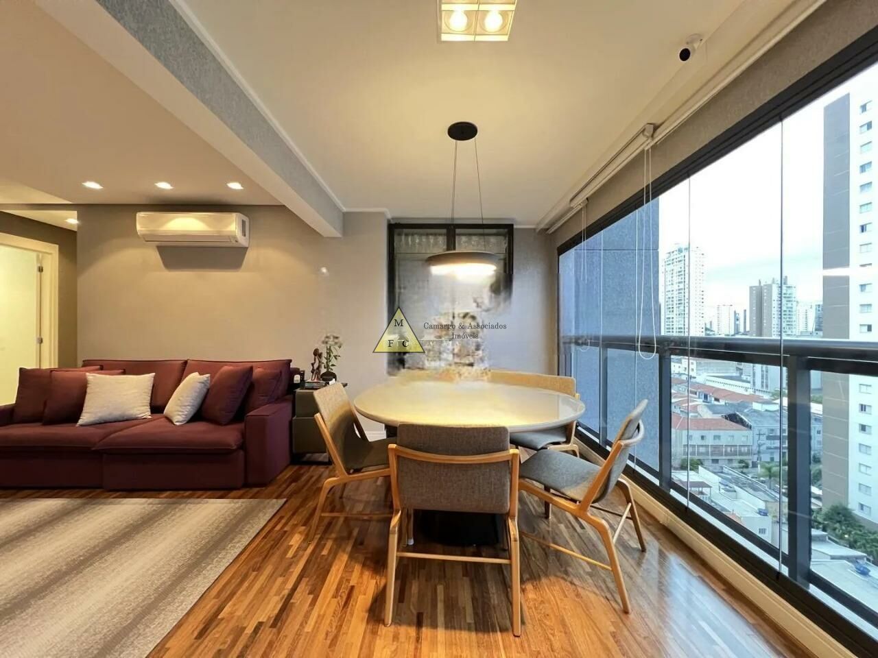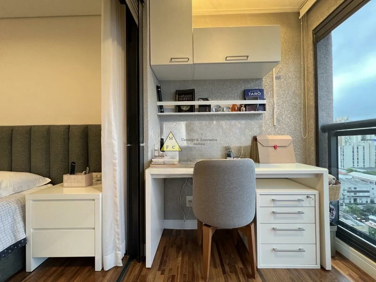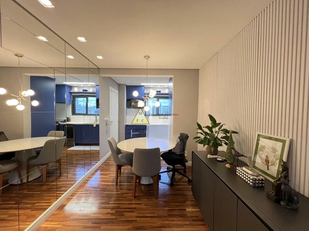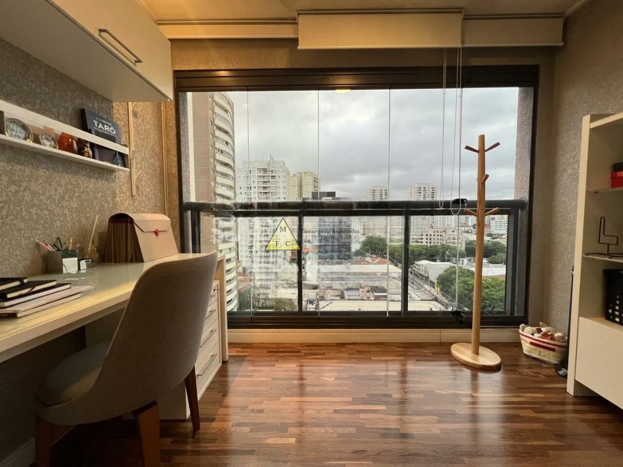 Apartamento a venda Vila Romana com 105 Metros 2 Quartos 1 Suíte 2 Vagas e escritório sala interligada com varada com churrasqueira fechamento de vidro ar condicionado cozinha americana repleto de armários ensolarado totalmente modernizado Andar alto vista Livre